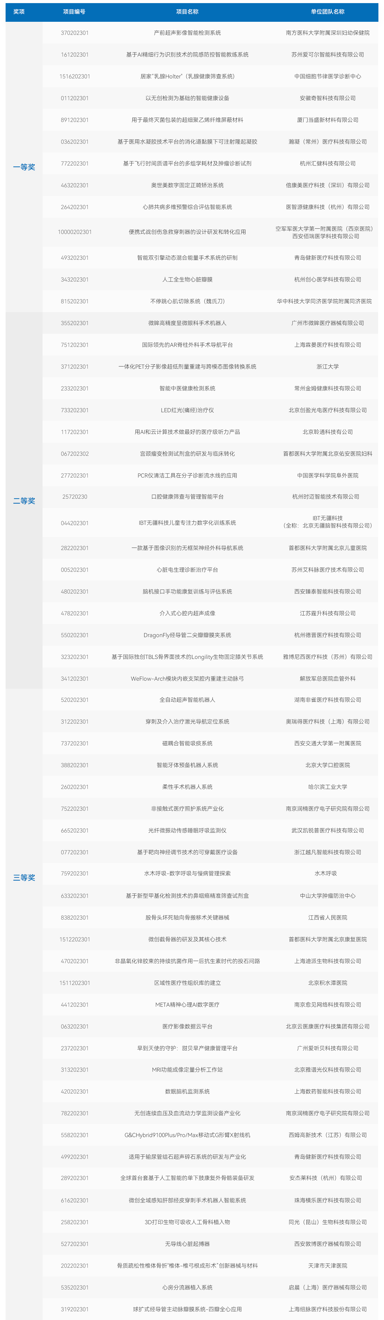第六届(2023)中国医疗器械创新网创业大赛决赛获奖名单